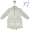 Este conjunto infantil destaca por su diseño suave, cálido y encantador. Confeccionado en un tejido gordito y completamente blanco, ofrece comodidad y abrigo durante los días más fríos.