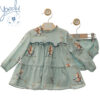 Este conjunto infantil destaca por su frescura y simpatía. El vestido y la braga presentan un fondo turquesa vibrante decorado con divertidos zorros paseando en bicicleta, un estampado único que hará que cualquier look sea especial.